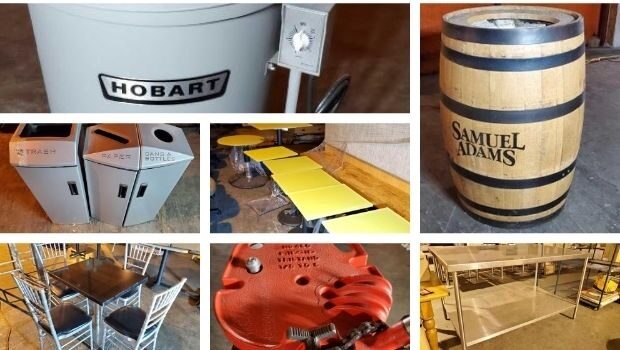 Featured are new and used seating, a new Hobart salad dryer, stainless back line espresso table and an Olive r732-N bread slicer with the accompanying cart and a new Ridgid 460 Tristand and Pipe threader kit.